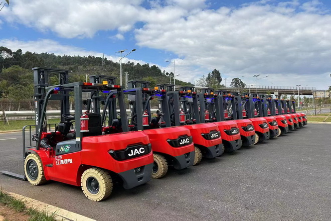 近年来,国产品牌产品性能品质的持续提升和高性价比关键因素,国产叉车在海外市场份额不断攀升。2023年江淮叉车出口销量突破万台,其中新能源产品销量实现翻番,充分发挥规模、利润的支柱作用。借助JAC品牌国际影响力,深耕“一带一路”沿线国家,全年新拓展15个合作国家渠道,实现当年销量超千台,海外朋友圈持续扩大。