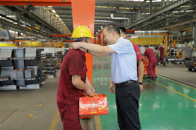 7月25日下午,正值高温时段,公司党委副书记、总经理姜文东亲临生产一线,为在高温下坚守岗位的广大员工送上了深切的慰问。在生产现场,无论是温度最高的焊接工位,还是露天作业的发车组,亦或是繁忙的装配线,员工们都以高昂的斗志和敬业的精神,坚守在自己的工作岗位上。汗水湿透了他们的衣衫,但他们的干劲却丝毫未减,严把产品质量关,确保生产任务按时完成。