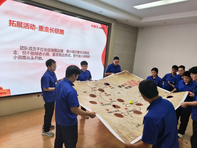 培训伊始,一场轻松有趣的“姓名接龙”破冰游戏迅速点燃现场氛围,新员工们在欢声笑语中拉近距离。紧随其后的专业课程内容充实、针对性强:企业文化培训通过追溯前身、剖析产业布局和价值观研讨,引导新员工深刻领悟“求实、创新、团结、高效”的核心精神与“世界五强 百年合力”的宏伟愿景,分组辩论与文化对标环节更激发了思想碰撞与行为共识;党团课程强化使命担当,点燃青年奋斗激情;廉洁从业教育以典型案例为镜鉴,结合合规准则解读,为新员工敲响职业警钟;叉车与AGV产品知识培训以结构图解和操作视频相结合,夯实专业基础认知;安全培训依托典型事故解析与应急流程动画演示,筑牢安全生产红线意识;质量课程通过典型缺陷图谱对比,深化质量标准执行力;精益概论则借丰田经典案例,精辟阐释持续改善的核心逻辑。首日尾声的“重走长征路”情景模拟活动,更让学员在团队协作中切身体验了坚韧不拔的奋斗精神,收获满满。