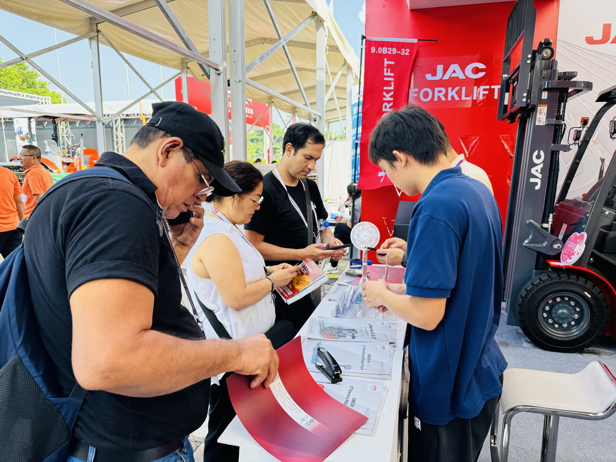 在这场具有全球影响力的经贸盛会上,众多民族品牌纷纷亮出 “硬核” 产品,江淮重工携多款全新升级产品再次亮相,涵盖内燃、电动及智能仓储等多个产品系列特别是搭载了公司自主研发智能控制系统的CPD20L电动叉车,凭借其高效节能的运行表现与精准稳定的操控性能,成为展会焦点,吸引了大量境外客商驻足交流与体验,获得多方好评。