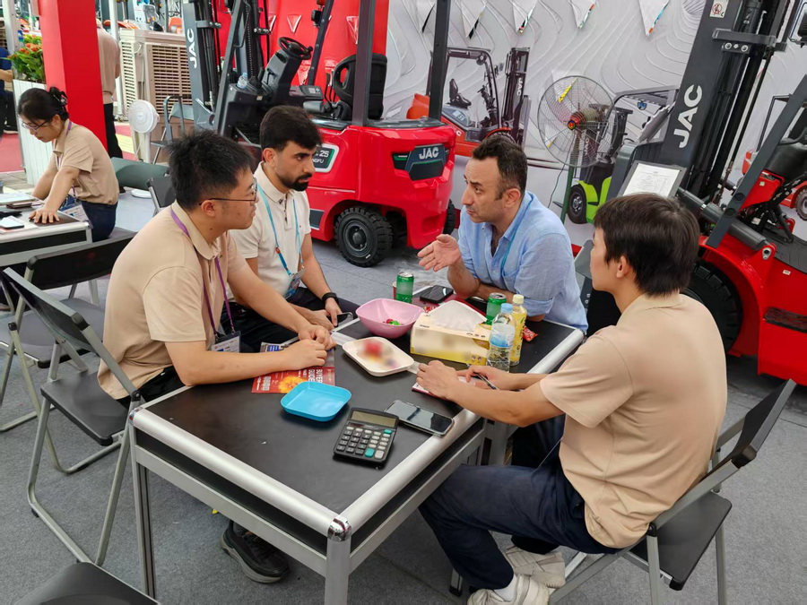 展会期间,江淮重工展区洽谈氛围热烈,接待了来自欧美、东南亚、中东等地区的众多客商。参展团队以专业的讲解与周到的服务,系统介绍了产品技术特点、适用场景及售后保障体系。部分客商现场参与设备实操,对产品性能与人机设计给予了充分肯定。经初步统计,展会期间共接待具有明确采购意向的客户数百家,并成功签约订单百余台,成果显著。