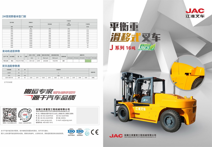 J系列16吨滑移式重装叉车